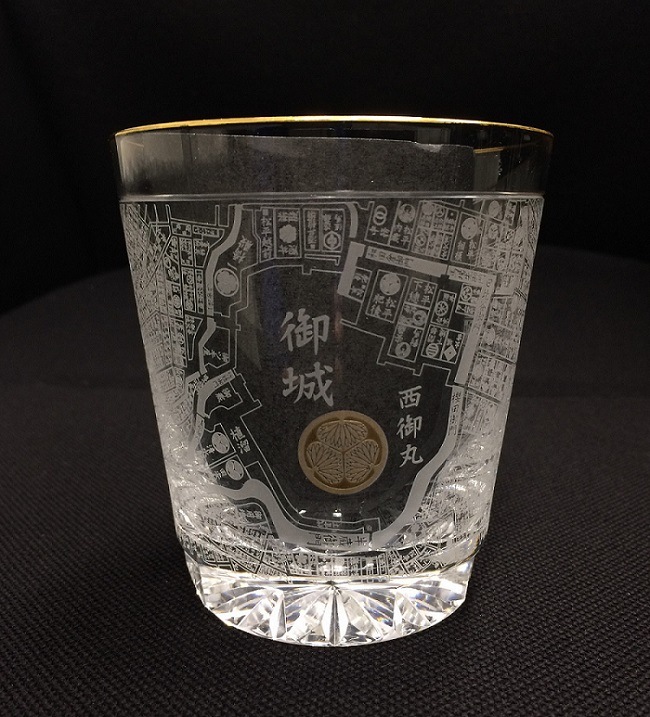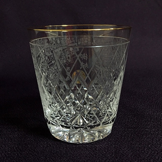 江戸古地図をサテンプリントした江戸切子グラス